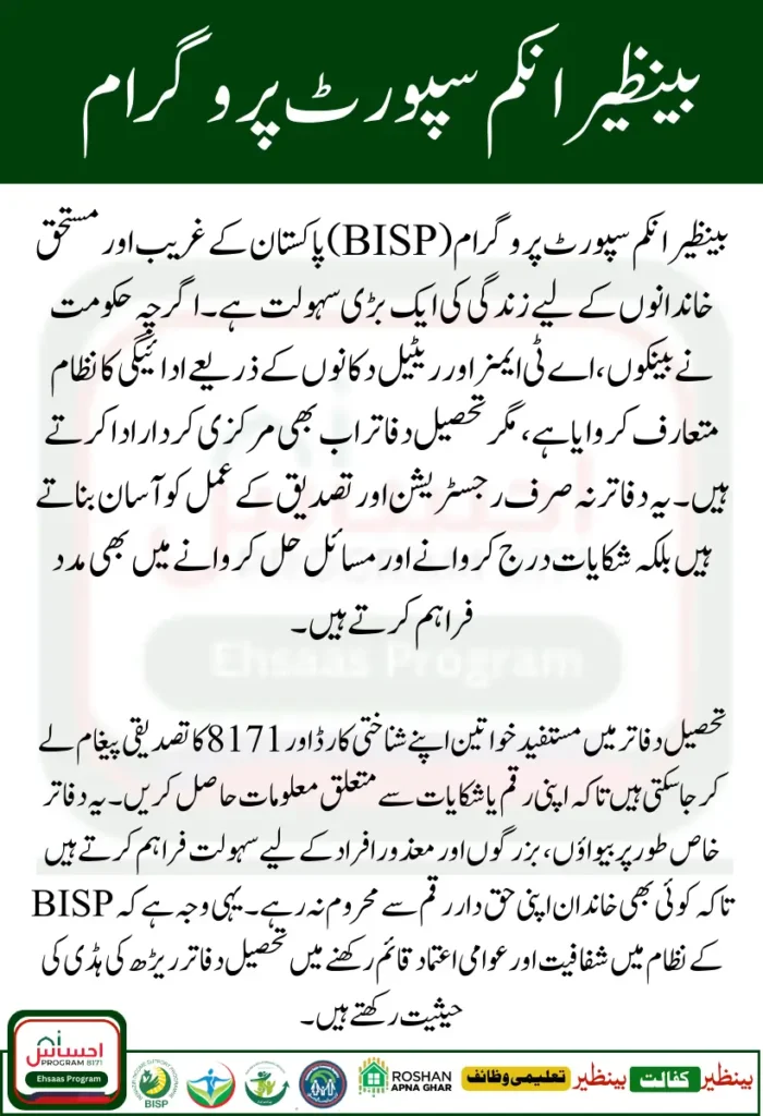 All BISP services are free. Report bribes or illegal deductions immediately at 8171 or by calling the helpline 0800-26477.