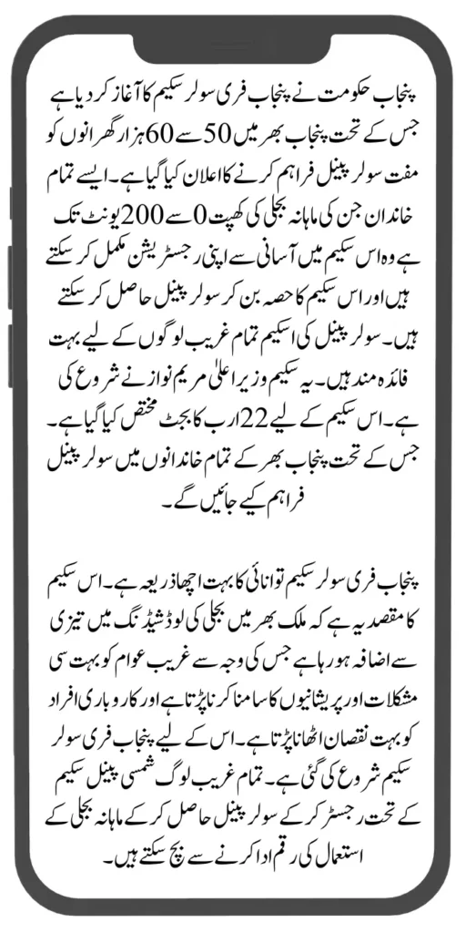 Solar panel schemes are very beneficial for all poor people. Wazir Aala Maryam Nawaz started this scheme, which has a budget of 22 billion. Solar panels will be provided to all families across Punjab.