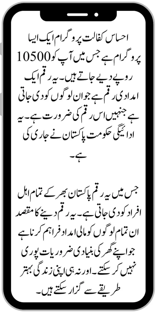 The Ehsaas Kafaalat program is a program in which you are given an amount of 10500 rupees. This amount is an aid amount which is given to those people who need this amount. This payment has been released by the government of Pakistan.