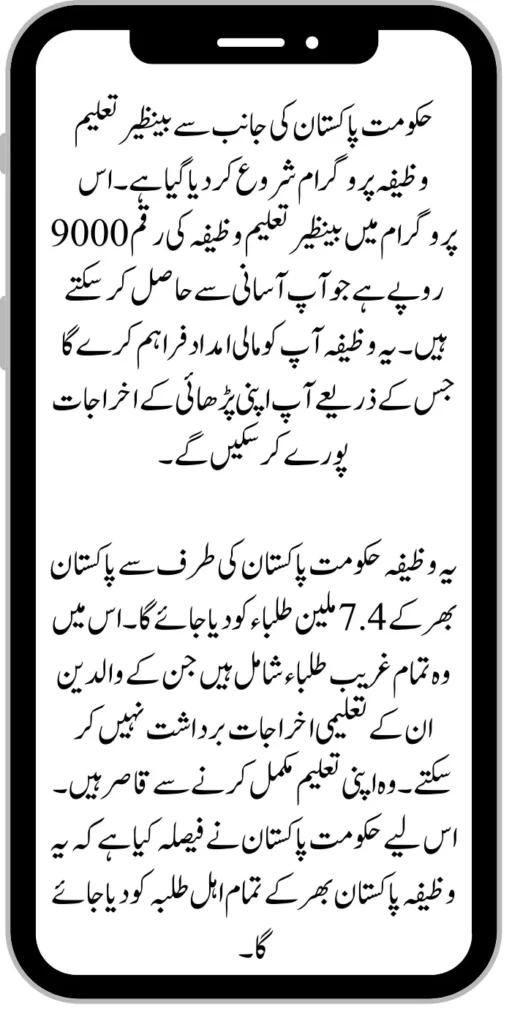 Benazir Taleemi Wazifa New Installment 9000 Update