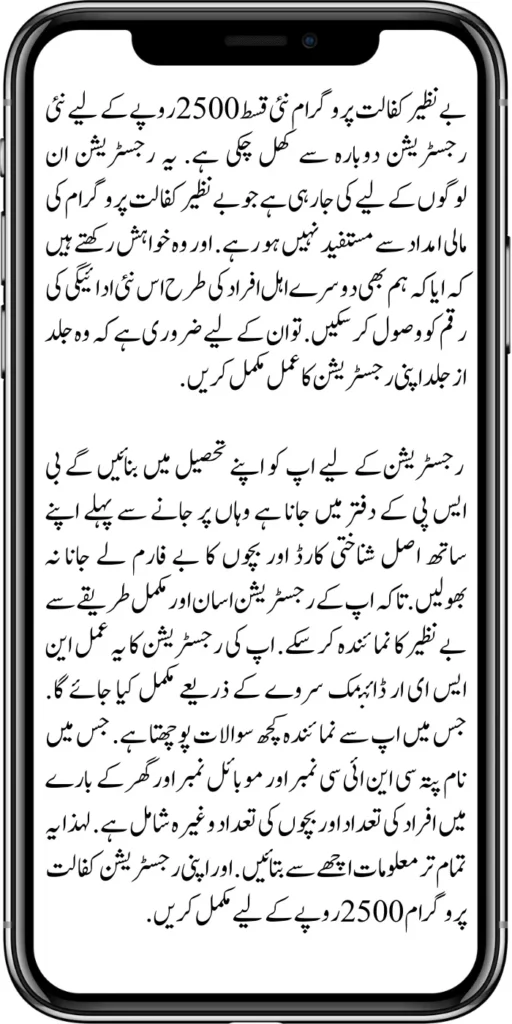 New registration for Benazir Kafalat program Latest installment 2500 rupees has been opened again. This registration is being done for those people who are not benefiting from the financial assistance of the Benazir Kafalat program. And they wish that we can also receive this new payment amount like other eligible persons. So they need to complete their registration process as soon as possible.