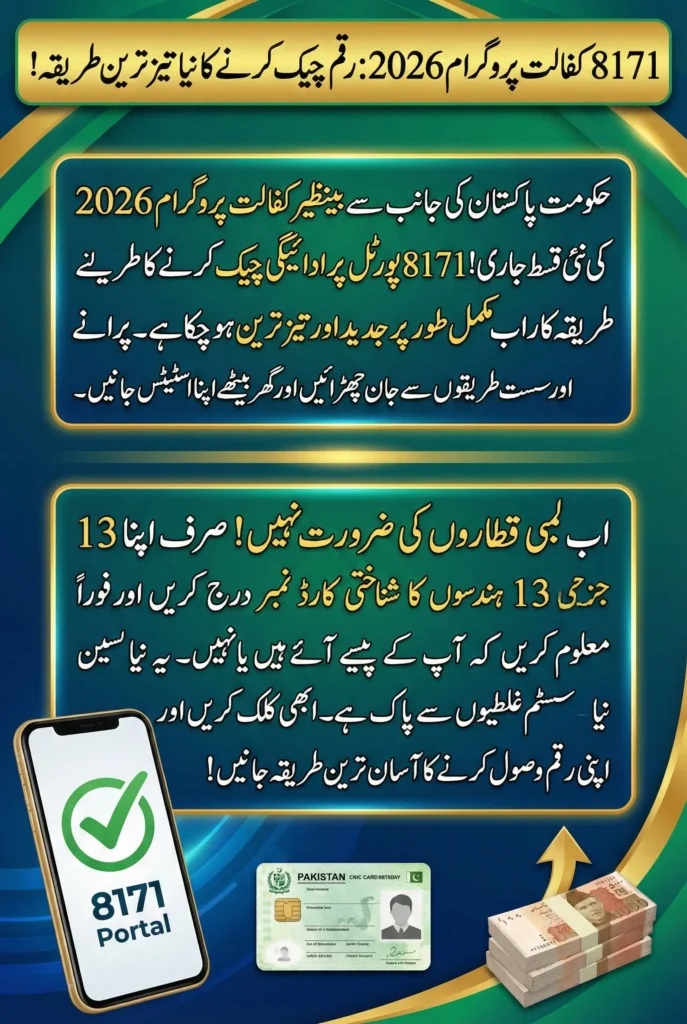 8171 portal is Pakistan’s official platform for managing and checking Kafalat Payment via 8171 Portal. In 2026, the portal has been updated to make the process faster and more user-friendly. It allows registered beneficiaries to confirm whether their monthly payments have been processed and released. This system is especially helpful for families who rely on Kafalat funds for daily expenses, as it provides instant access to payment status without the need to visit offices physically.