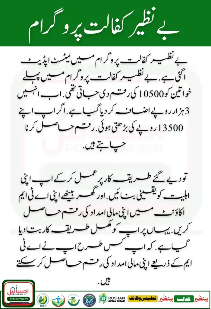 The latest update has come in the Benazir Kafaalat Program. Earlier, women were given an amount of 10500 in the Benazir Kafaalat Program. Now they have been increased by 3 thousand rupees. If you want to get your increased amount of 13500 rupees.