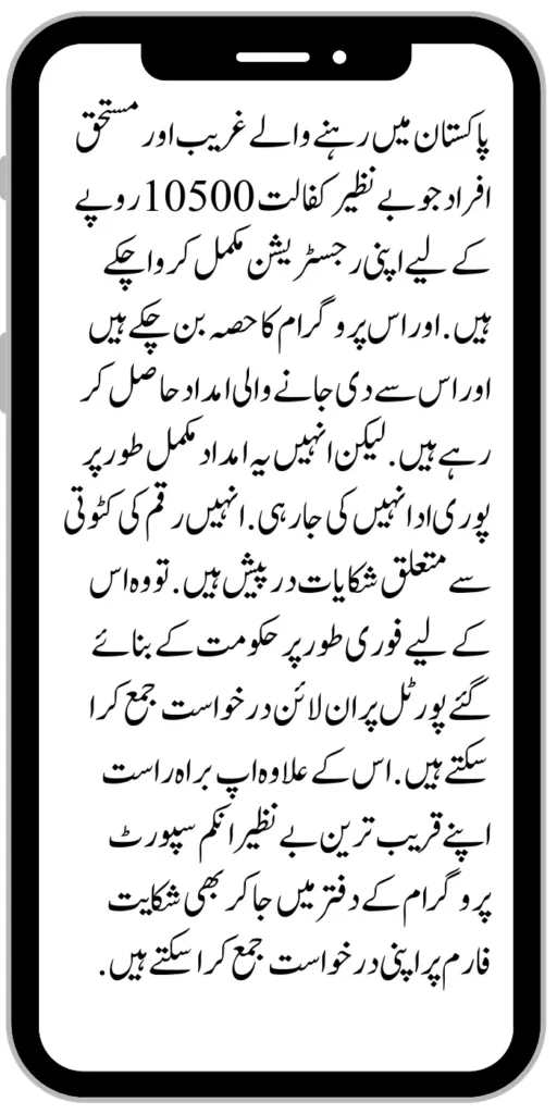Poor and deserving people living in Pakistan who have completed their registration for Benazir Kafaalat 10500 rupees. And have become a part of this program and are receiving the assistance given by it. But they are not being fully paid this aid.