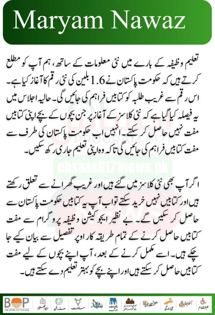 The scheme, launched by Maryam Nawaz Sharif in 2024, provides free educational books to students nationwide. It aims to support education and ensure all students access essential learning materials.