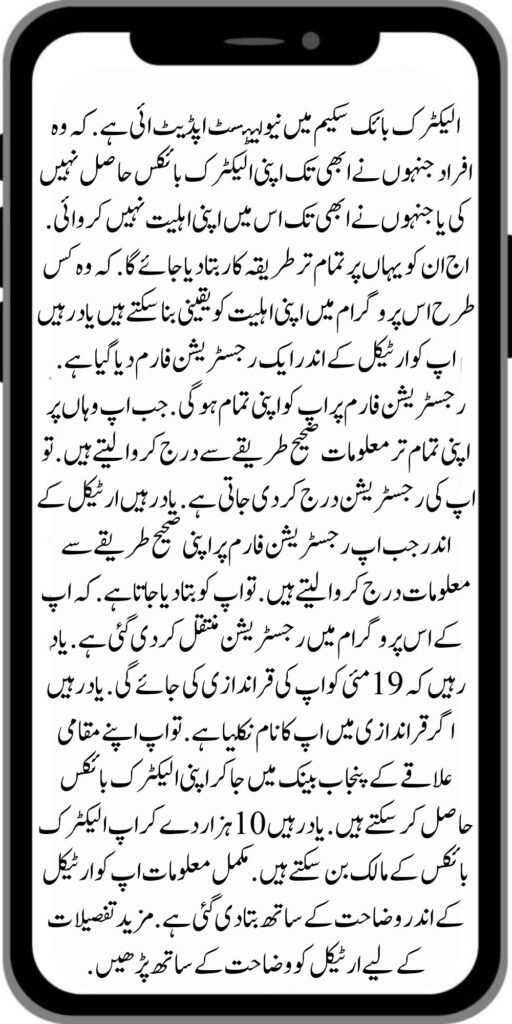 Remember, when you enter all your information correctly, you are qualified in some program. become eligible. So you have to go to any Punjab bank in your local area and get it from your electric bike. Remember when you enter all your information correctly there. So you are qualified in this program. When you qualify for this program. So you have to go to any Punjab bank in your local area with your electric bike and get it installed. Remember, monthly wise up has to deposit 10,000 for electric bikes and 5,000 for petrol bikes in Punjab Bank.
