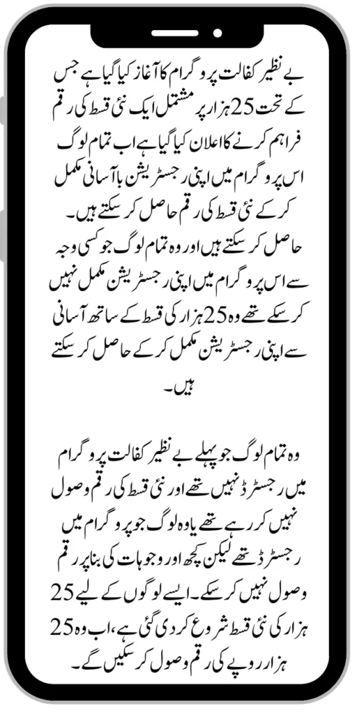 Benazir Kafaalat program has been launched under which it has been announced to provide a new instalment amount which consists of 25 thousand now all people can easily complete their registration in this program and get the new instalment amount. can get and all those people who were not able to complete their registration in this program for any reason can get it by completing their registration easily with an instalment of 25 thousand.