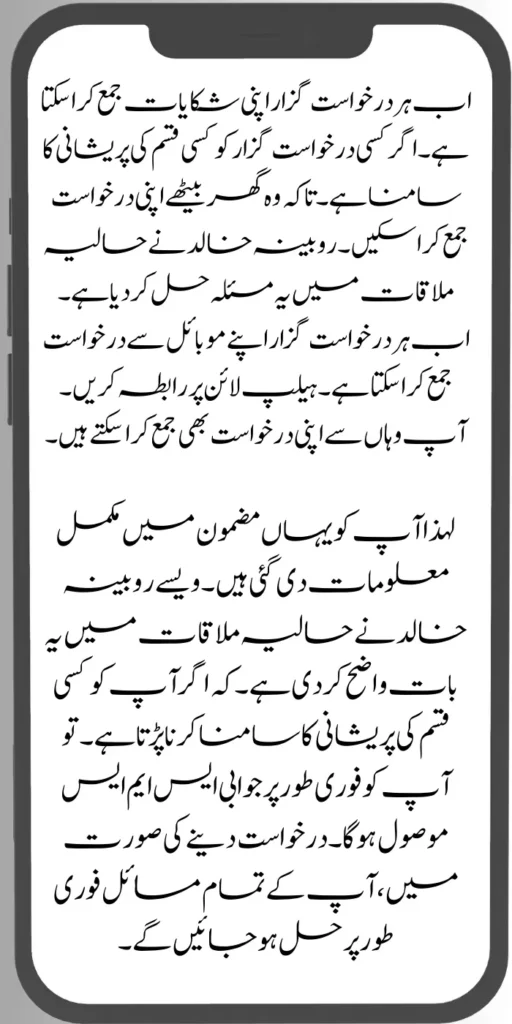 You have been given complete information in the article. By the way, Rubina Khalid made this clear in the recent meeting: If you face any problem, you will receive an SMS reply immediately. In case of application, all your problems will be solved immediately.