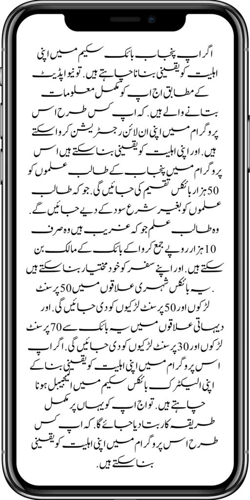 According to the new update, you should ensure your eligibility for the Punjab Motorcycle Scheme. In that case, they will give you complete information on how to get your online registration for this program. To ensure their eligibility in this program, 50 thousand bikes will be distributed to the students of Punjab, which will be given to the students without interest. Those students who are poor can own a bike by depositing only 10 thousand rupees.
