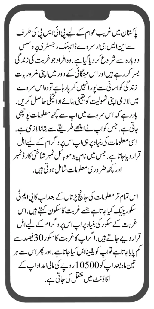 Based on this information, you are declared eligible for this program. Which includes name, address, mobile number, identity card number and some necessary information. After checking all this information, your PMT score is checked which is called the poverty score. Based on this poverty score you are declared eligible for this program. If your poverty score is found to be less than 30%, then you are eligible. And then every three months, financial assistance of Rs. 10500 is transferred to your account.