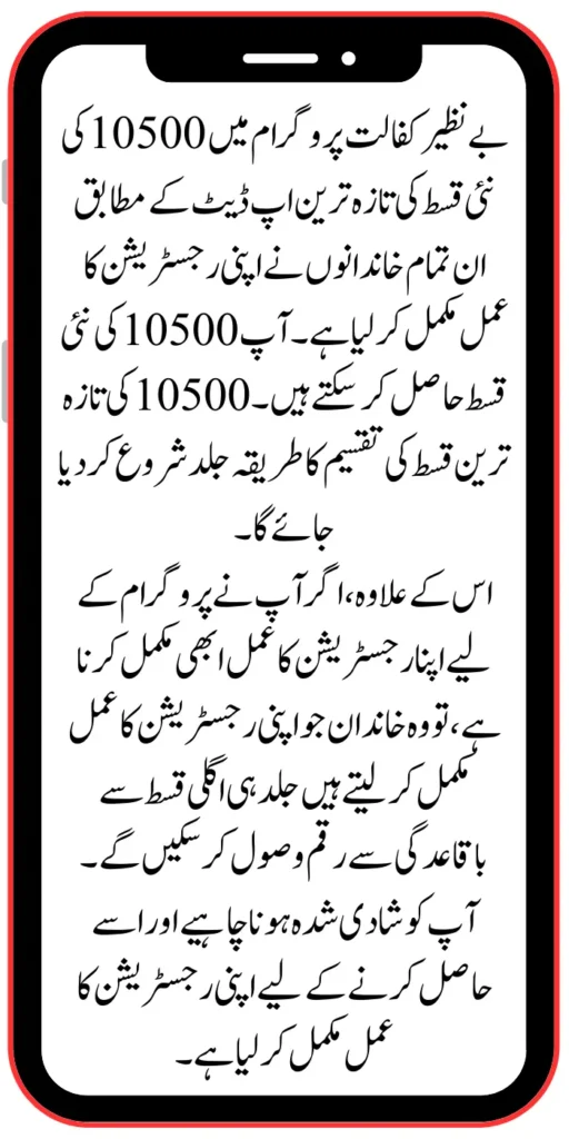 According to the latest update on the new installment of 10500 in the Benazir Kafaalat program, all those families have completed their registration process. You can get a new installment of 10500. The distribution method of the latest installment of 10500 will be started soon.