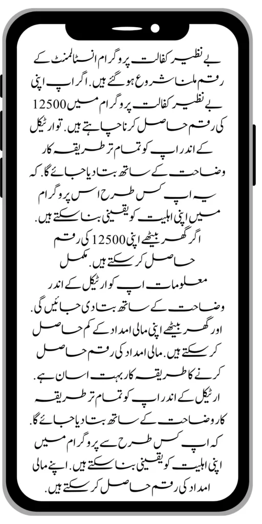Benazir Kafalat Program is a program started by the Government of Pakistan, in which all newly eligible families across Pakistan will be provided with an aid amount of Rs.12500. If you want to get this amount then you are provided with all the information about it on our website above. In which you are also told about the eligibility criteria above, after knowing which you can register. By completing the process, you can easily get the assistance amount of 12500 rupees from the Kafalat program.