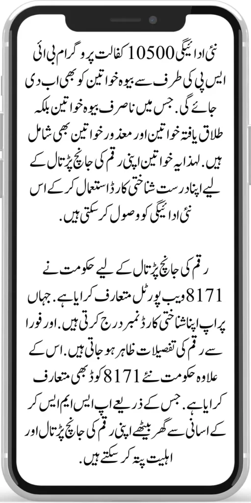 A new payment of 10500 will be given to widows under the BISP 10500 Kafaalat Program. Which includes not only widows but also divorced women and disabled women. So these women can receive this new payment by using their valid identity card to check their money.