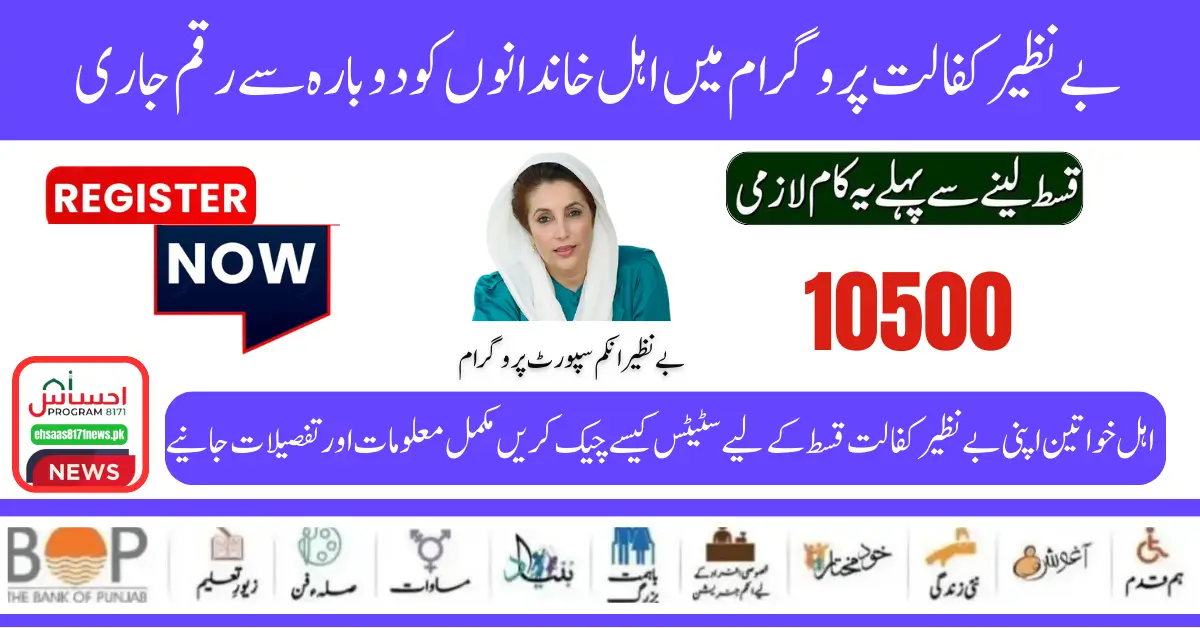 The new payment of 10,500 rupees received by the Benazir Kafaalat Program is being provided to all eligible families across Pakistan. If you want to receive this payment, you have to check your status. After that, you will receive it. Our article below provides all methods to check the status and get payment.