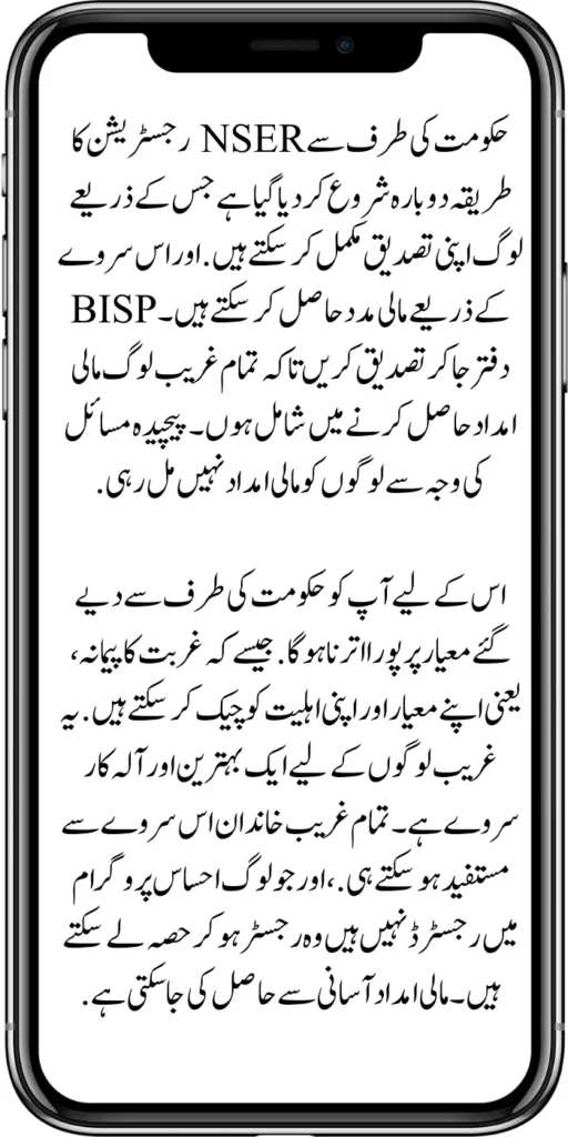The government restarted the NSER document verification registration procedure so that people can complete their verification and get financial help through this survey. Go to the BISP office and confirm that all poor people are included in economic assistance. People are not getting financial aid due to complex problems.