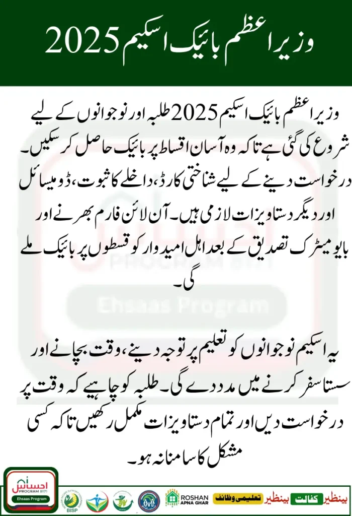 The Government of Pakistan has launched the PM Bike Scheme 2025 to support students and young people who face difficulties in commuting daily. With rising petrol prices and increasing transportation costs, many college and university students cannot afford private vehicles. Public buses are overcrowded, and in smaller cities and rural areas, transport is either limited or unreliable.