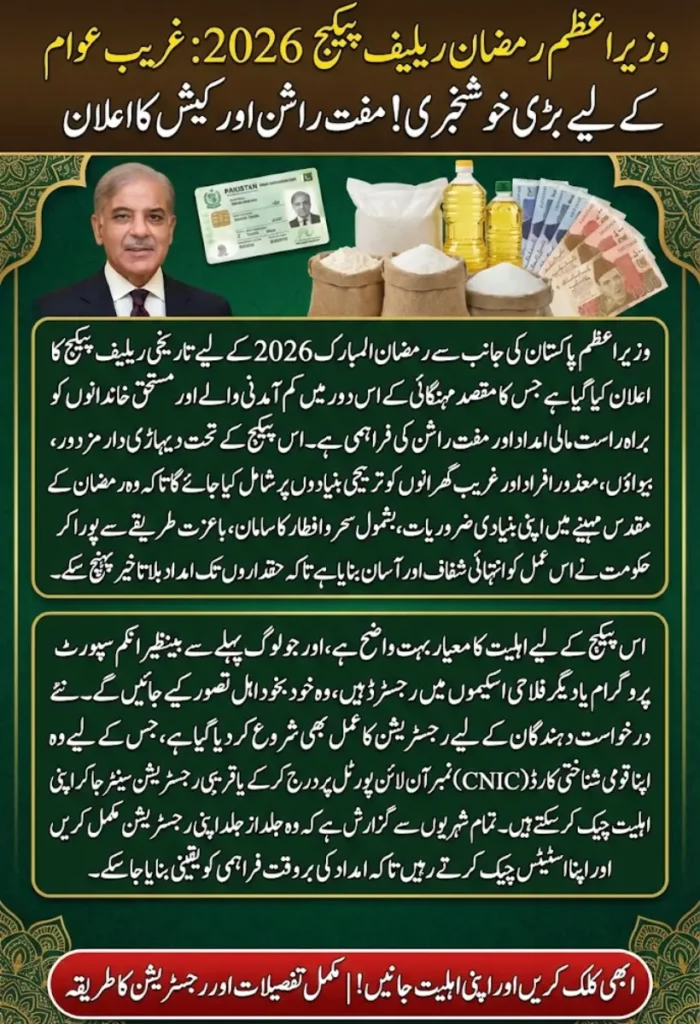 You Can Also Read : Prime Minister Ramzan Relief Package 2026