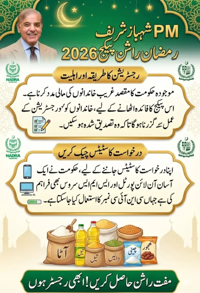The PM Shehbaz Sharif Ramzan Rashan Package 2026 is a timely and essential initiative to support families facing financial challenges during the holy month. By offering a clear registration process, defined eligibility rules, and an easy method to check application status, the program ensures relief reaches the most deserving households.