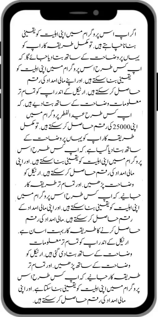If you want to ensure your eligibility in this program. So the complete procedure will be explained to you here. How you can ensure your eligibility in this program. And can get your financial aid money. All the information has been explained to you in the article. How you can get your money of 25000 in the Eid UL Fiter Program. So the complete procedure has been explained to you here with explanation.