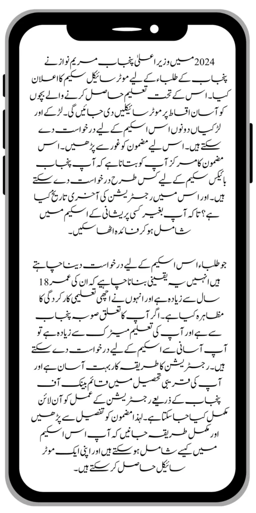 The government of Punjab has launched the Punjab Bike Scheme for students in Punjab so that they can become independent and continue their studies. Those students could not continue their studies due to poverty. All the information is given here to solve their problems.