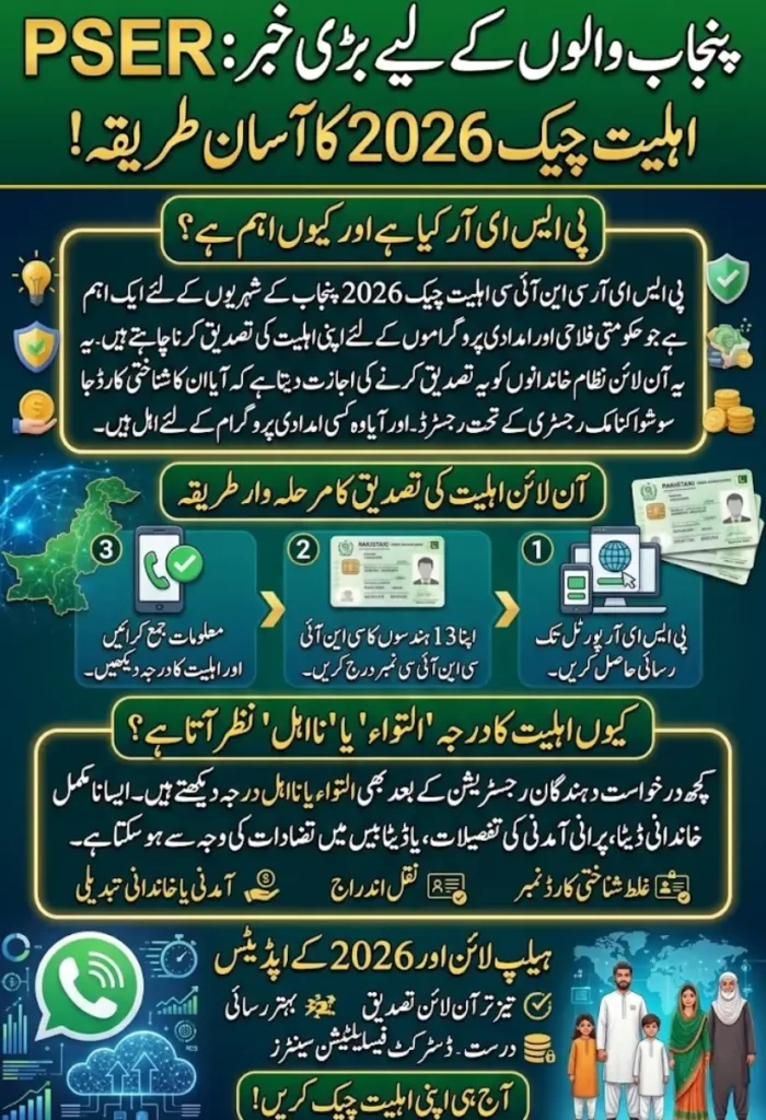 In 2026, the government has emphasized digital verification to streamline the process. By checking your CNIC against the PSER database, you can quickly learn whether you qualify for any current welfare programs and take necessary steps if your status requires updating.