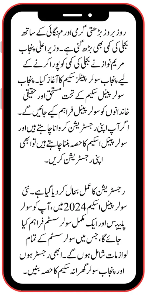 The registration process has been restored. In the new solar panel scheme 2024, you will be provided with solar plates and a complete solar system, which will be included in the entire solar system accessories. Register now and become a part of the Punjab Solar Gharana Scheme.