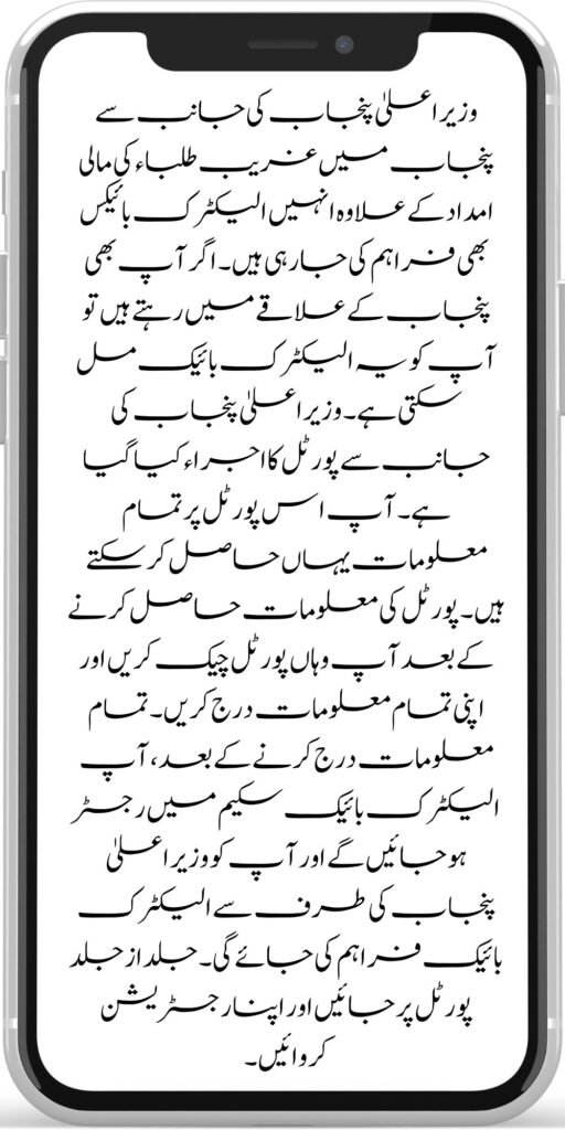 The government has launched an Punjab Electric Bike scheme. Under this scheme, when you register, you will not have to pay any rupees. This scheme was started by the Government of Pakistan Chief Minister Punjab Maryam Nawaz.