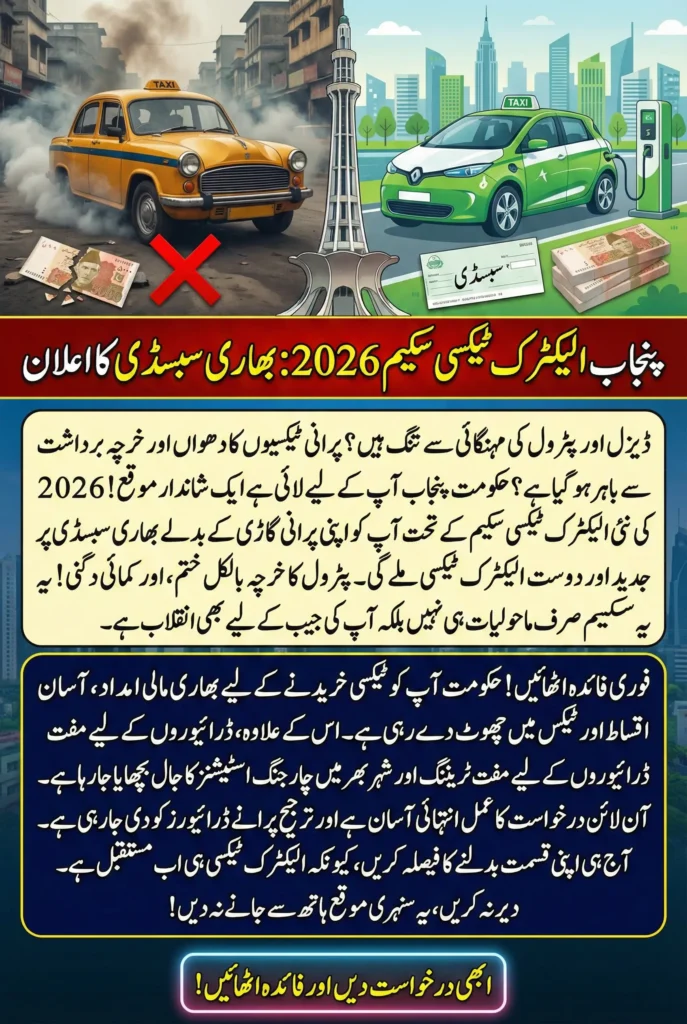 The Punjab Electric Taxi Scheme 2026 represents a bold step toward modernizing transportation while protecting the environment. By combining financial support, infrastructure development, and a clear regulatory framework, the scheme offers a win-win solution for drivers, commuters, and the planet. As electric taxis start hitting the streets of Punjab, the province will witness cleaner air, reduced traffic challenges, and a more sustainable future for public transport.