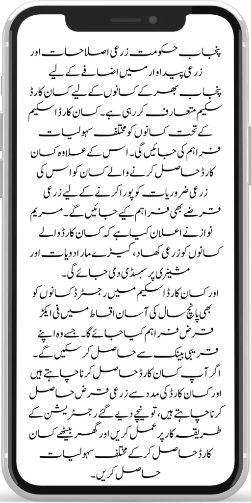 - The Punjab government will provide modern training and full awareness to the Kisan card holders about using new modern equipment. The method of growing crops through new technology will also be enlightened.