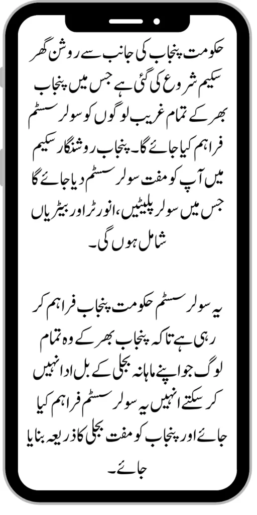 The Roshan Ghar scheme has been launched by the Punjab government, in which these solar systems will be provided to all eligible families across Punjab. These solar systems include batteries, inverters and solar plates. If you get this solar system. If you want to do it, all the information and details have been given to you above. After knowing which, you can easily get the solar system provided by this Roshan Ghar scheme.