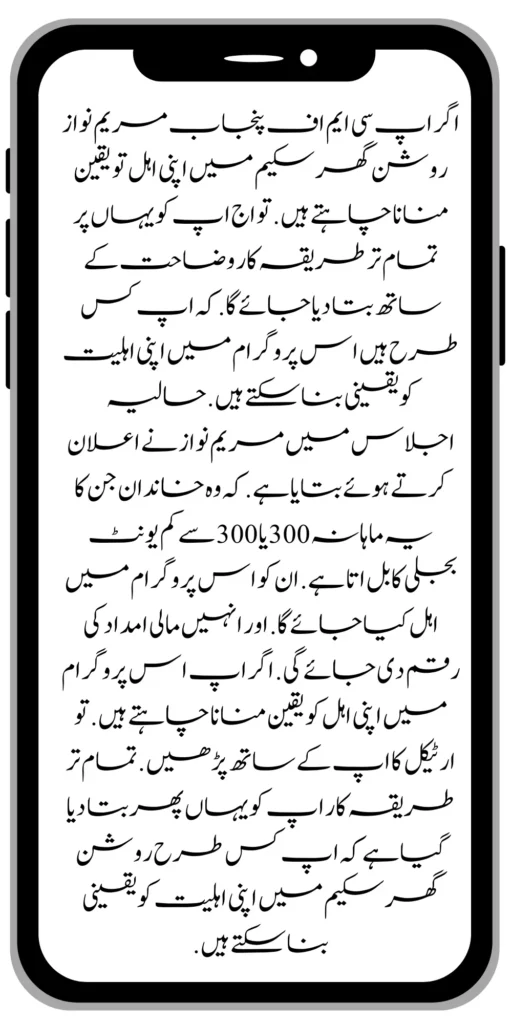 If you want to believe your eligibility in CM Punjab Maryam Nawaz Roshan Gher Scheme. So here you will be told all the procedures and an explanation. How can you ensure your eligibility in this program? The family whose monthly electricity bill is 300 or less than 300 units. They will be eligible for this program.