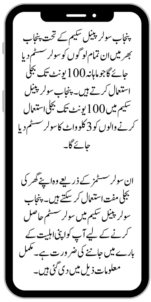 You can get a 3-kilowatt solar system from the Punjab Solar Panel Scheme. To get this solar system, you should consume 100 units of electricity per month. The complete information on this program is given below.
