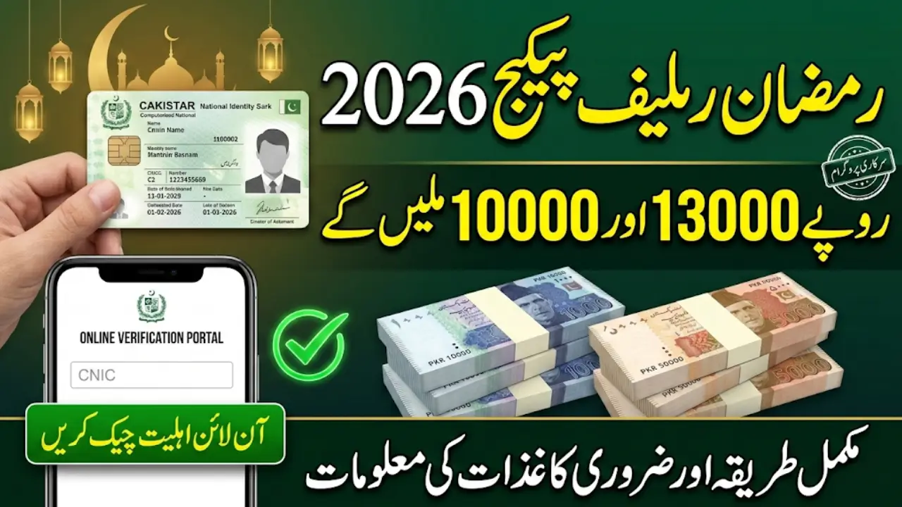 Ramzan Relief Package 2026 is a government initiative aimed at supporting families during the holy month of Ramzan. This year, two main assistance amounts are being provided: Rs 13,000 and Rs 10,000. These payments are intended to help eligible households cover essential expenses, including food and daily necessities, during the fasting period.