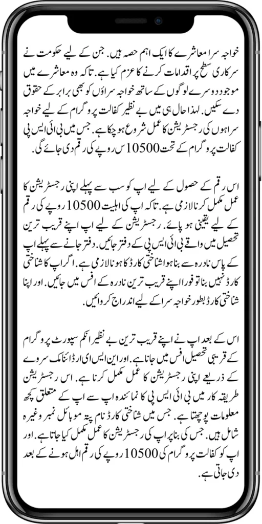 In this registration procedure BISP representative asks you for some information about you. Which includes identity card name address mobile number etc. Based on which your registration process is completed. You are given the amount of 10500 rupees of the Kafalat program after qualifying.