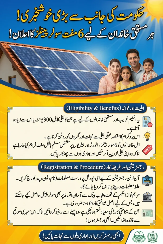 The Six Solar Plate System distribution program is a government-supported initiative designed to provide eligible low-income families with a complete solar energy setup. The system usually includes six solar panels, an inverter, batteries, and basic wiring to help households generate electricity independently and reduce reliance on expensive grid power.