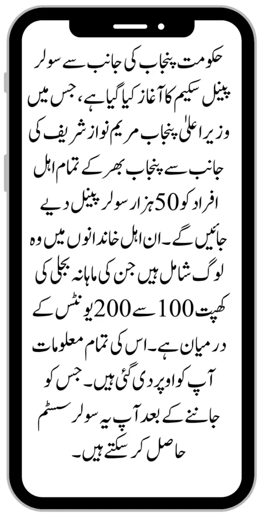 The solar panel scheme has been launched by the government of Punjab, in which 50,000 solar panels will be given to all eligible people across Punjab by the Chief Minister of the Punjab government, Maryam Nawaz Sharif. These eligible families include those people whose monthly Electricity consumption is between 100 to 200 units. All its information has been given to you above. After knowing which you can get this solar system.