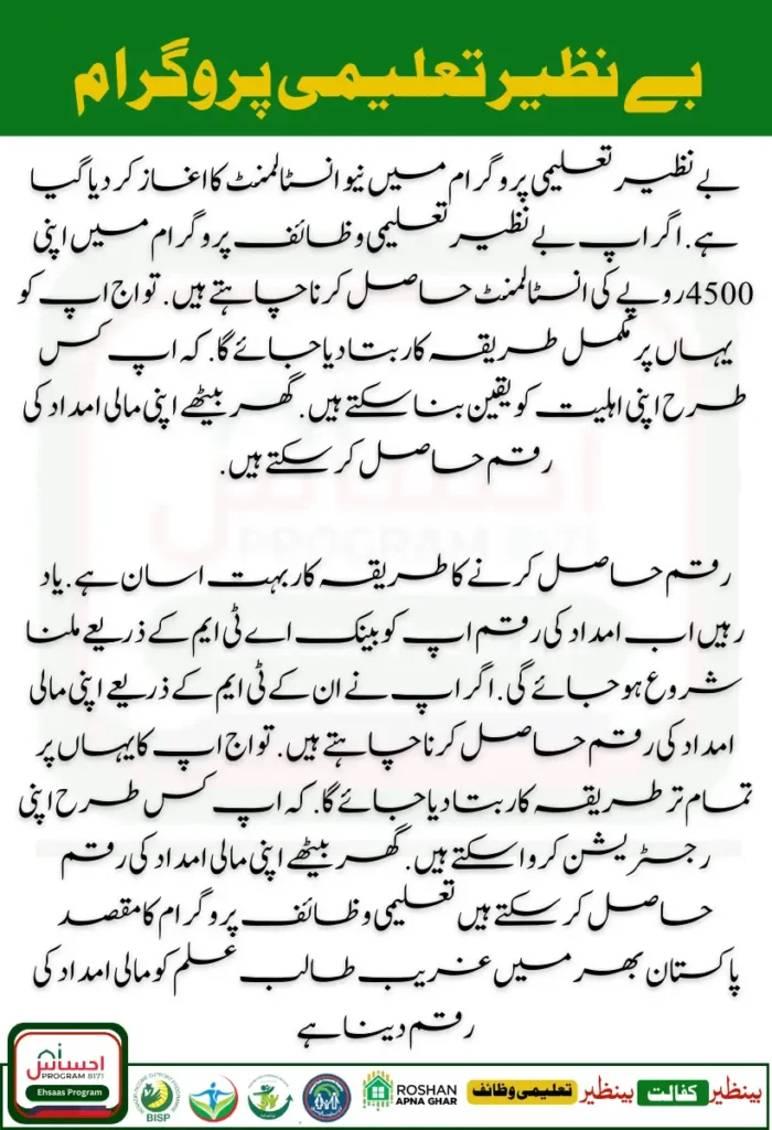Benazir Taleemi Wazifa New Payment 4500 Start