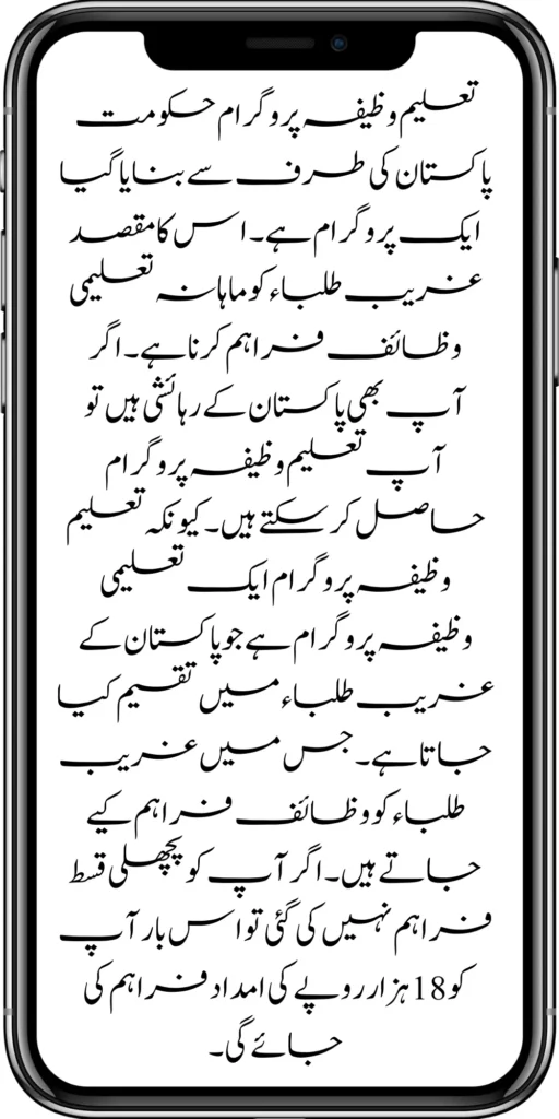 The Taleemi Wazifa Program is an educational scholarship program distributed among the poor students of Pakistan, which provides scholarships to poor students. If you have not been provided with the previous installment, then this time, you will be provided with the assistance of 18 thousand rupees.